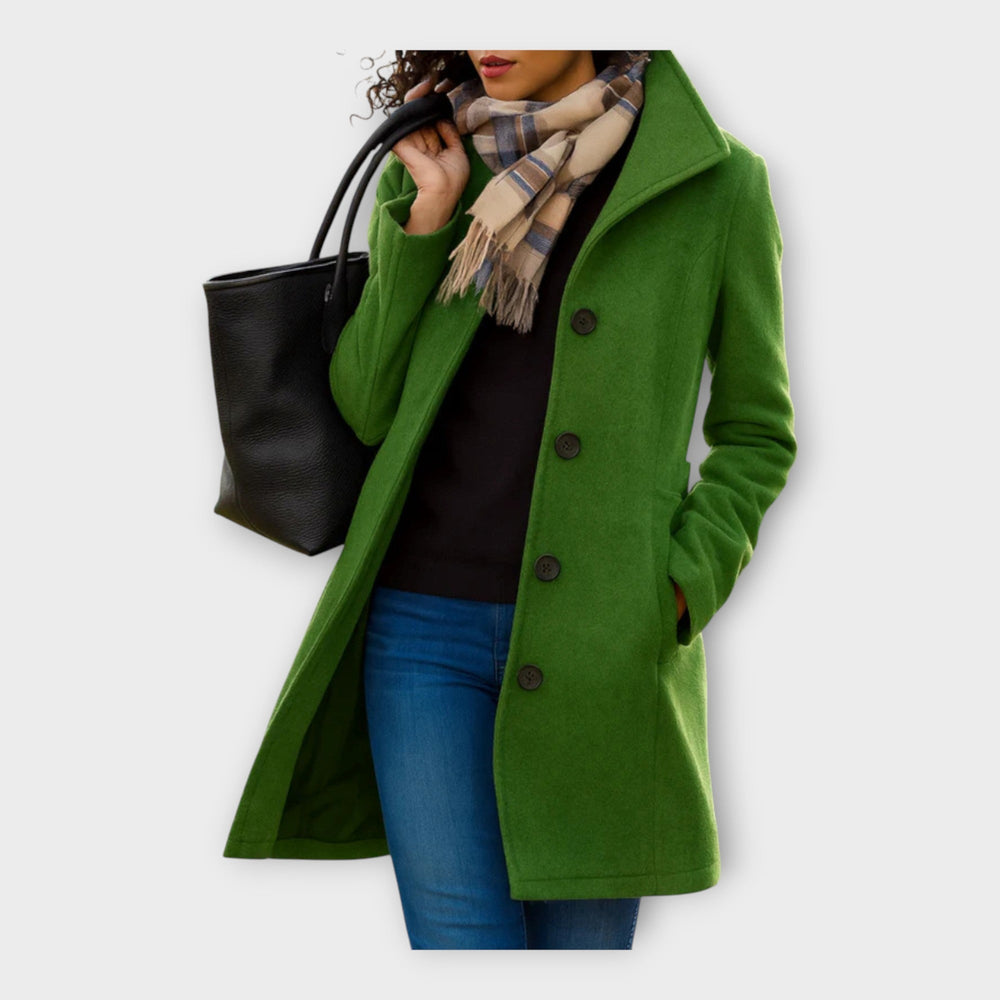 Elegantni volnen plašč z sofisticiranim zapiranjem