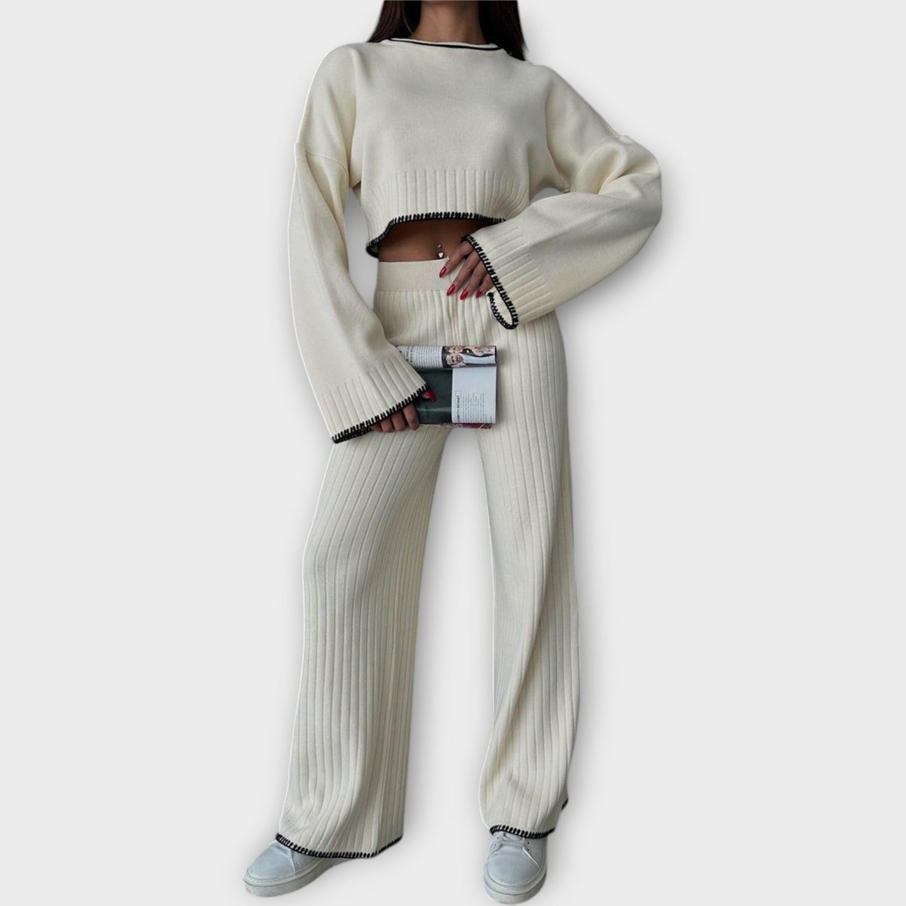 Pleteni komplet s kratko majico in dodelanimi detajli