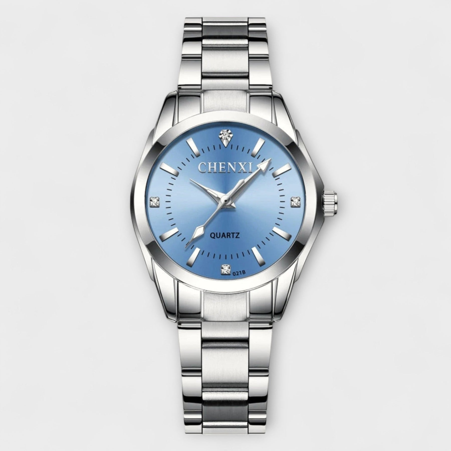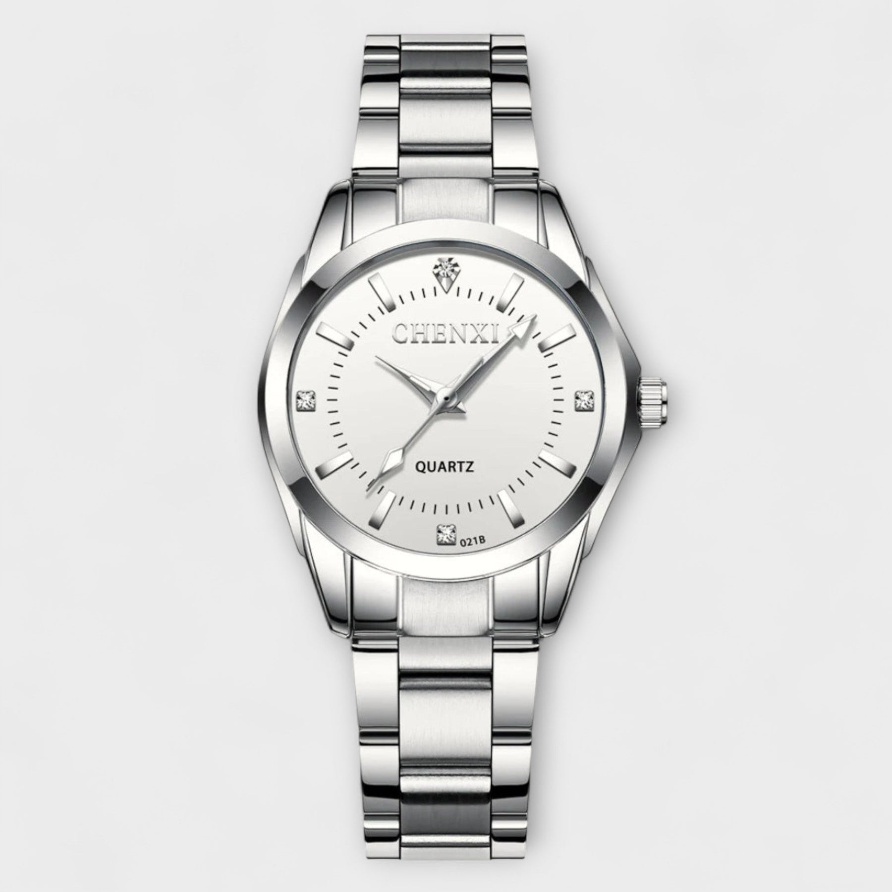 Plošča iz poliranega nerjavnega jekla in minimalistični detajli poudarjajo vašo eleganco, ne da bi obremenili vaš videz. Z diskretnim kvarčnim mehanizmom in trpežno zapestnico zagotavlja udobje in stil skozi ves dan.